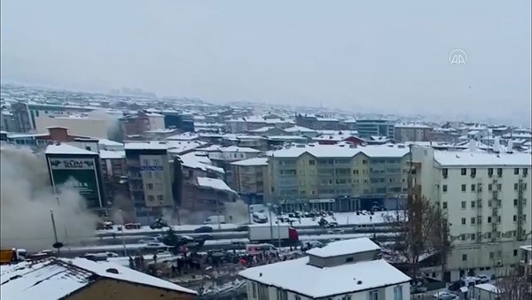 Malatya'da Çevre Yolu yakınlarında bulunan bazı binalar, ikinci depremde yıkıldı. Malatya Büyükşehir Belediyesi görevlilerince ilk depremin boyutunu belirlemek için çekimlerin yapıldığı sırada 5 binanın ikinci depremde yıkılma anı, dronla kaydedildi.