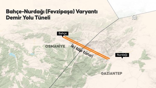 9 buçuk kilometrelik Bahçe-Nurdağı Varyantı Demir Yolu Tüneli ulaşım süresini kısaltacak