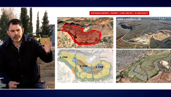 Çevre, Şehircilik ve İklim Değişikliği Bakanı Murat Kurum, Adıyaman’da yeni kurulacak konteyner kent alanında düzenlenen AA Editör Masası'nın konuğu oldu. Bakan Kurum: "Konutlarımız yöresel mimariye uygun, zemin artı 3-4 katı geçmeyecek. Şehrin ihtiyaçlarına göre 105 metrekare brüt, 85 metrekare net, 3 artı 1 daireler yapacağız. Köy konutlarımızı vatandaşlarımızın ihtiyaçları doğrultusunda net 93 metrekare 3 artı 1 olarak yapacağız." dedi.