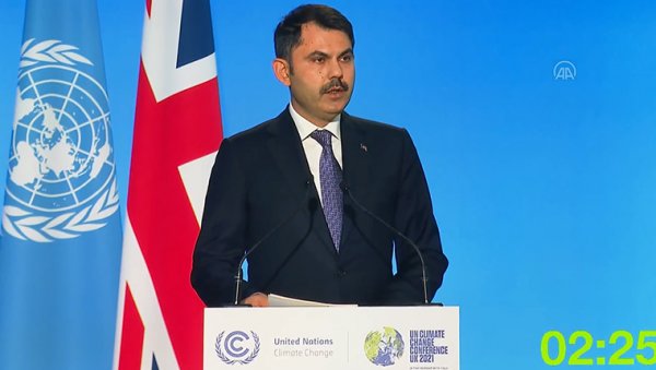 Çevre, Şehircilik ve İklim Değişikliği Bakanı Murat Kurum, İskoçya'nın Glasgow kentinde düzenlenen Birleşmiş Milletler İklim Değişikliği Çerçeve Sözleşmesi 26. Taraflar Konferansı kapsamında (COP26) düzenlenen üst düzey oturumda hitap etti.