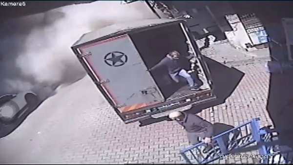 Güngören'de Sanayii Mahallesi Malazgirt Caddesi'ndeki kentsel dönüşüm için boşaltılan 4 katlı binanın çökme anı, güvenlik kamerası tarafından kaydedildi.