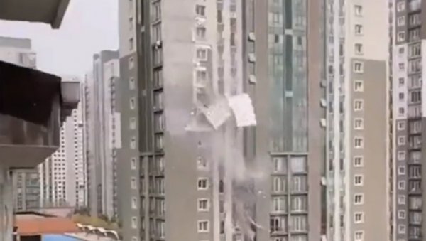 İnnovia 2'den şok görüntüler! Fırtına nedeniyle cephe uçtu!