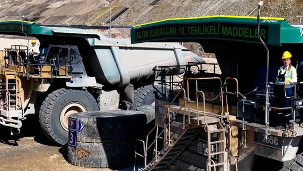 Ulubey ve Eşme ilçeleri sınırlarında yer alan altın madeni sahasındaki büyük kayalar, yüksekliği 8, genişliği 9,5, uzunluğu 15,3 metre olan kamyonlarla taşınıyor. Yükleriyle ağırlıkları 450 tona kadar ulaşan devasa araçların kadın operatörleri Kamile Mavi ve Meryem Saymalı, 7 ay önce başladıkları zorlu görevlerini başarıyla gerçekleştiriyor.