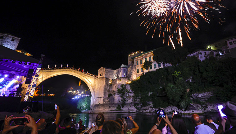Konuşmanın ardından Mostar Köprüsü'nden atlayışlar gerçekleştirildi, meşale ve havai fişek gösterisi yapıldı.