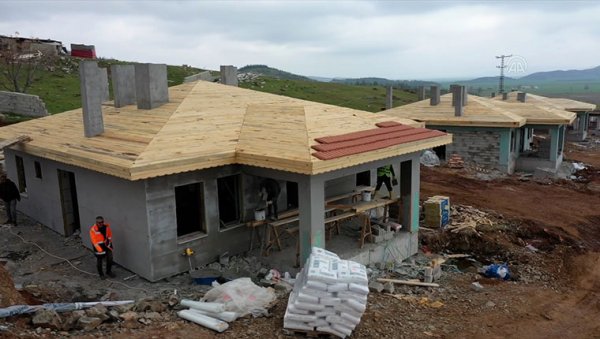 Nurdağı'ndaki köy tipi afet evlerinde kaba inşaat bitmek üzere