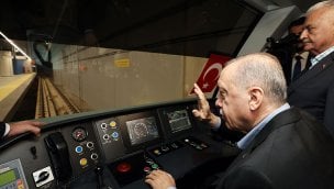Cumhurbaşkanı Recep Tayyip Erdoğan, tören öncesinde metro hattının Kur ...