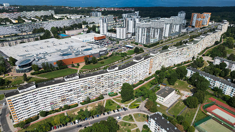 Falowiec 800 metre uzunluğu ile Avrupa'nın en geniş ikinci konut binası konumunda.