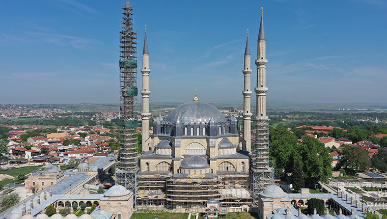 Mimar Sinan'ın "ustalık eseri" Edirne'deki Selimiye Camisi'nde devam eden kapsamlı restorasyon çerçevesinde onarımdan geçen 4 minareden 3'ündeki işlemler bitirildi.