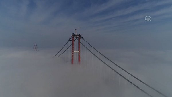 Bölgede etkili olan sisin içinde kalan 1915 Çanakkale Köprüsü, etkileyici bir manzaraya büründü. Sisin içinde kaybolan köprü, yaklaşık 500 metre yükseklikten görüntülendi. Köprünün Asya ve Avrupa yakalarındaki 318 metre yüksekliğindeki ayakları, sisin içinde kaybolurken, kuleler arasındaki tabliyelerin bir bölümü de aynı şekilde görüntü verdi.