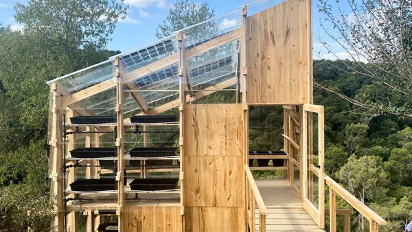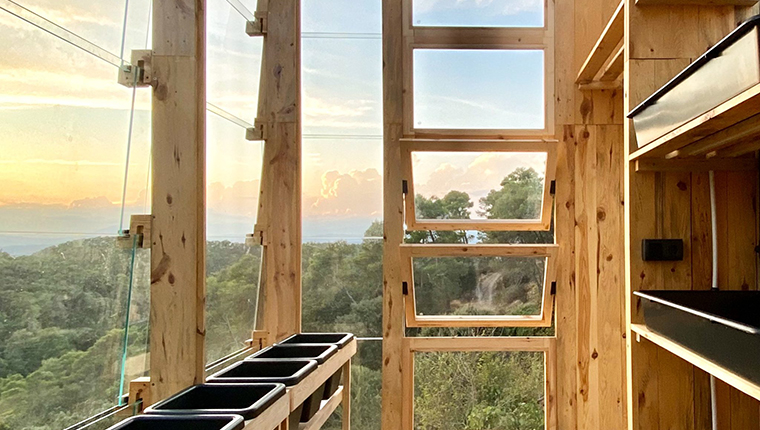 Seranın güneye bakan elmas şeklindeki çatısı, kısmen veya tamamen güneş ışığının içeriye girmesini sağlıyor. Seranın zemin katı fidelik ve bitki laboratuvarı olarak kullanılacak, üst kısım ise boydan boya bitki yetiştirmek için kullanılacak. Yapı, yerel ahşap kullanılarak üretilmiş.