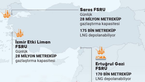 Türkiye, enerji arz güvenliğinde önemli rol oynayan 3 Yüzer Sıvılaştırılmış Doğal Gaz (LNG) Depolama ve Yeniden Gazlaştırma Ünitesi (FSRU) ile bu alanda dünyanın sayılı ülkeleri arasında yer alıyor ve her biri 28 milyon metreküp gazlaştırma kapasitesine sahip FSRU tesisleriyle dikkati çekiyor.