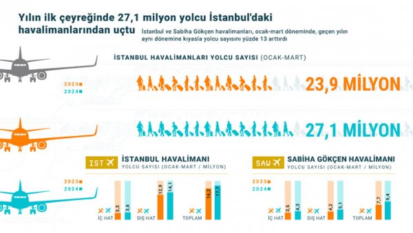 İstanbul ve Sabiha Gökçen havalimanları, ocak-mart döneminde, geçen yılın aynı dönemine kıyasla yolcu sayısını yüzde 13 arttırdı.