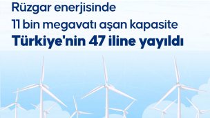 Türkiye'nin rüzgar enerjisindeki 11 bin 400 megavatı aşan kapasitesi 47 ildeki santrallerden oluşurken, en yüksek kapasite İzmir'de bulunuyor. ...