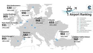 İstanbul ile Sabiha Gökçen havalimanları, 11-17 Kasım'da günlük ortalama sefer sayıları bakımından Avrupa'da en yoğun ilk 10 havalimanı arasına girmey ...