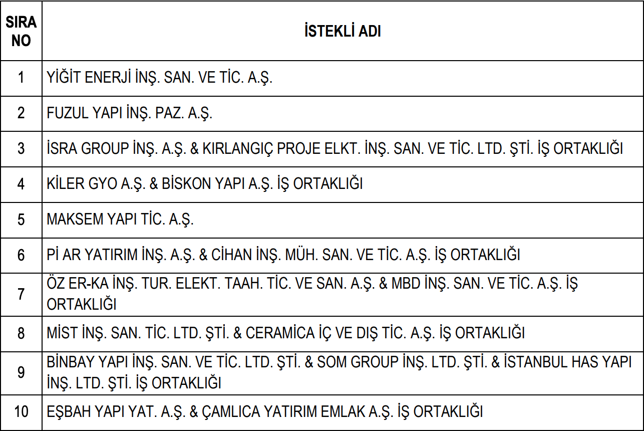 25 Ocak 2023 günü gerçekleştirilen ilk oturumda istekli firmaların listesi şöyle;