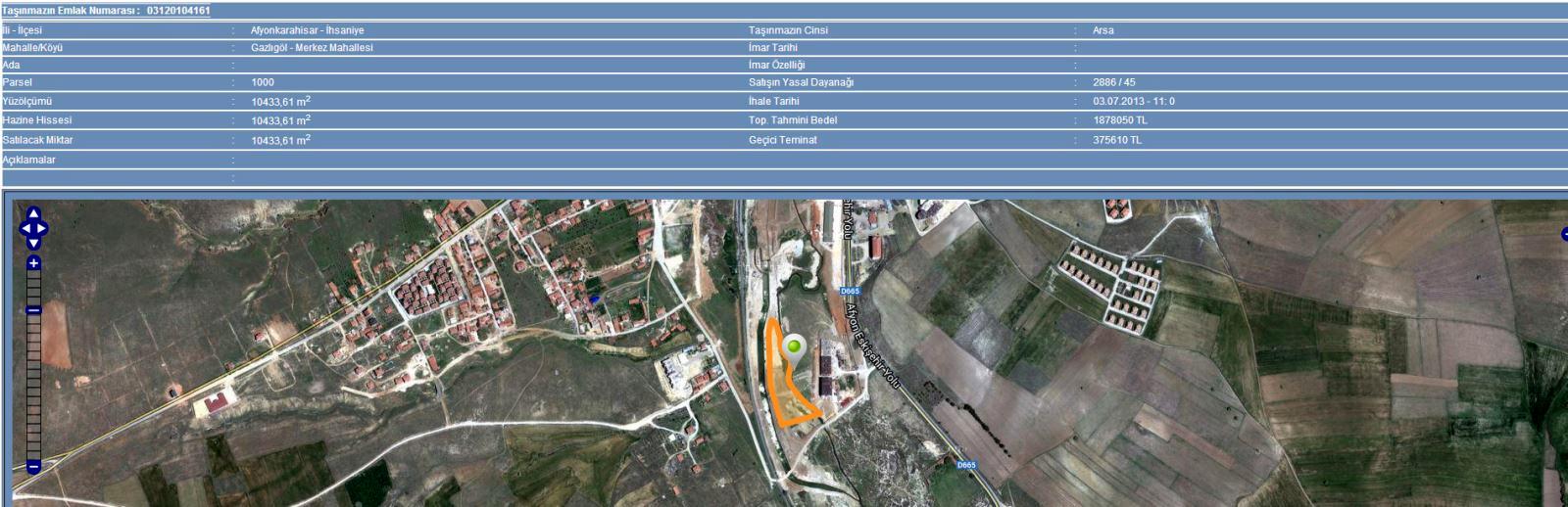 Milli Emlak Genel Müdürlüğü, Afyonkarahisar İhsaniye bölgesinde 3 parsel arsa satıyor
