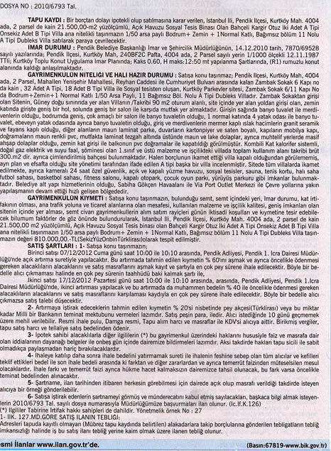 Yapılan açıklamalara göre Pendik Kurtköy Parkevler Sitesi'ndeki villanın brüt 300 metrekare kullanım alanı bulunuyor. Villa için tahmini fiyat 810 bin lira olarak belirlenirken satış 7 Aralık 2012 günü saat 10.00'da Pendik Adliyesi'nde gerçekleştirilecek.