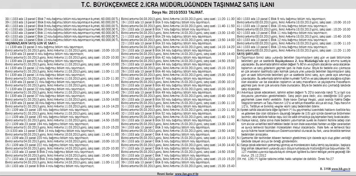 Büyükçekmece 2. İcra Müdürlüğü, Esenyurt Safir Park Residence ve Atmaca Apartmanı’nda yer alan bazı taşınmazları icradan satışa çıkardı