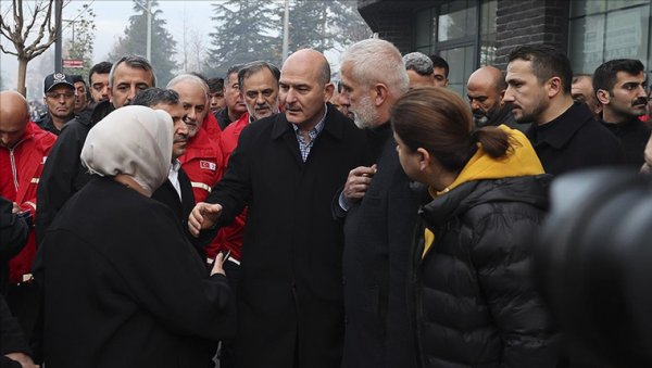 Soylu, deprem nedeniyle panikle dışarı çıkarak sokakta bekleyişlerini sürdüren vatandaşlarla görüştü.
