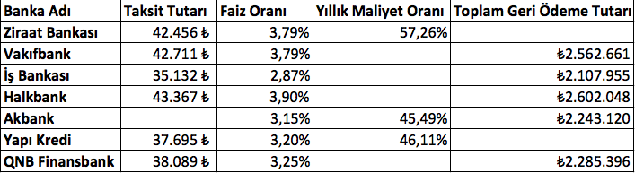 Bankalar tarafından paylaşılan yeni güncellemeler ile birlikte “1 milyon TL 60 ay vadeli” konut kredi faiz oranları ise şu şekilde;