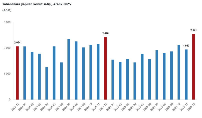 Yabancılara Aralık ayında 2 bin 541 konut satışı gerçekleşti