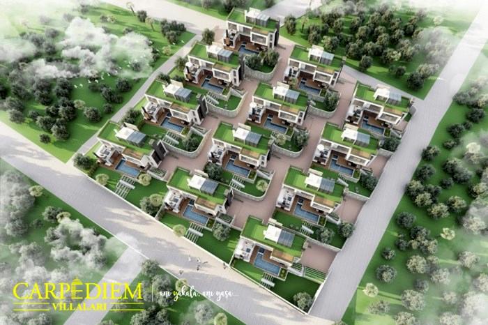 Carpediem Villaları, 2+1 ve 3+1 tipinde villaların bulunduğu bir konut projesidir. Her villanın geniş terası ve bahçe alanı bulunmaktadır. Ayrıca proje içerisinde açık ve kapalı yüzme havuzları, fitness center, açık ve kapalı otopark gibi sosyal olanaklar da mevcuttur.