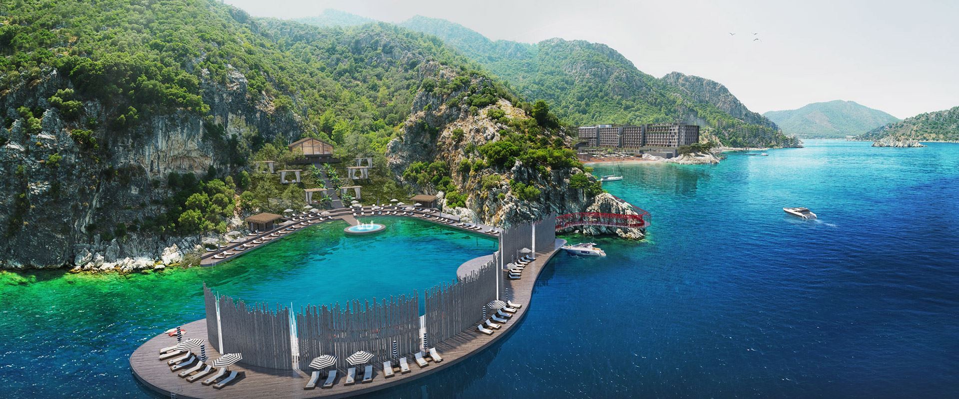 Marmaris’de yükselen Sinpaş Kızılbük projesi dev bir turizm tesisi olarak inşa ediliyor.