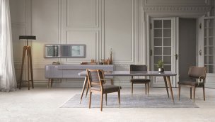 Güzel anıların biriktirildiği, dostlarla, aileyle paylaşılan yemeklerin asıl ev sahibi olan yemek odalarına Amber Yemek Odası, tasarım detaylarıyla mermer, metal ve ahşabın kusursuz kombinlenmesiyle elagan bir dokunuş yapıyor.
