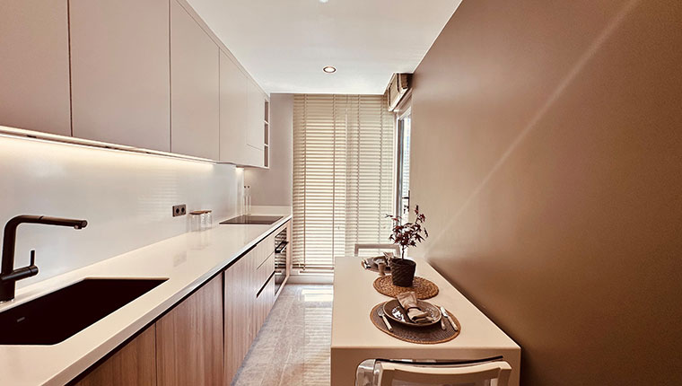 Projenin tasarımı mutfak ve banyolarda tercih edilen modern ve dayanıklı malzemelerle tamamlanıyor.