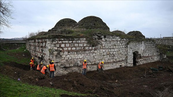 Edirne'de 15. yüzyıl yapısı Gazi Mihal Hamamı'nın restorasyon çalışmalarına Vali Yunus Sezer'in talimatıyla başlandı.