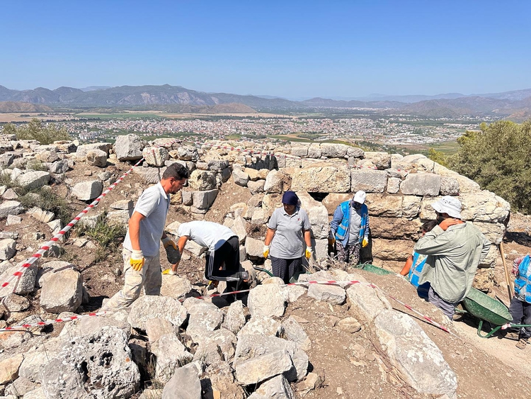 Şerefler Mahallesi Kuspınar Tepesi'ndeki kazılar, Fethiye Müze Müdürlüğü başkanlığında yürütülüyor.