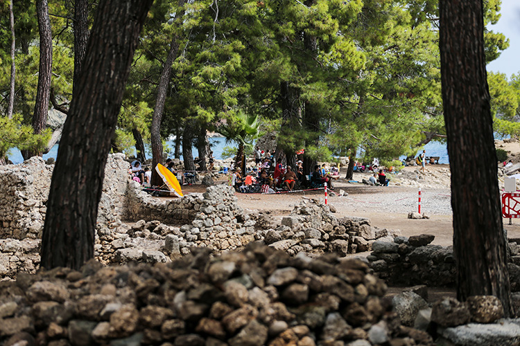 Yerli ve yabancı çok sayıda turistin ziyaret ettiği Phaselis'teki koyda tatilciler bir yandan yüzerken, diğer yanda eşsiz tabiata sahip antik kent kalıntılarının arasında gezme fırsatı buluyor.