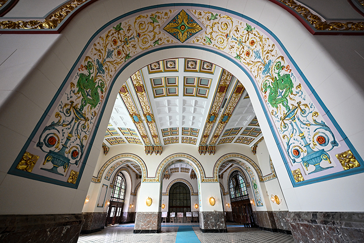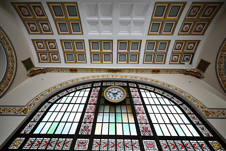 Korkmaz, bekleme salonundaki vitray camların da gar binası içinde kurulan vitray atölyesinde ustaların ellerinden geçtiğini ve her birinin aslına uygun olarak yenilendiğini aktardı.