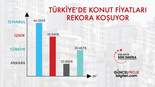 TCMB tarafından açıklanan KFE oranlarına göre ülke genelinde konut metrekare birim fiyatı 30 bin 487 TL olarak kaydedildi. Ülke genelinde konut metrekare birim fiyatı en yüksek il ise İstanbul oldu.