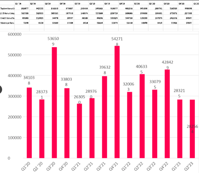 2023’ün 2. çeyreğinde, konut satış adedi geçen sene aynı döneme göre %30 azalırken, 2023 yılının 2. çeyreğinde 282 bin 564 adet konut satışı gerçekleşti. Konut satış adedi bir önceki çeyreğe göre %34; geçen senenin aynı dönemine göre ise %0,2 azalmış oldu.