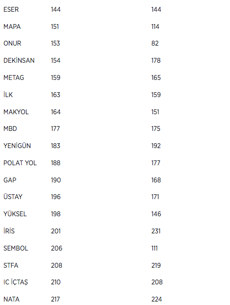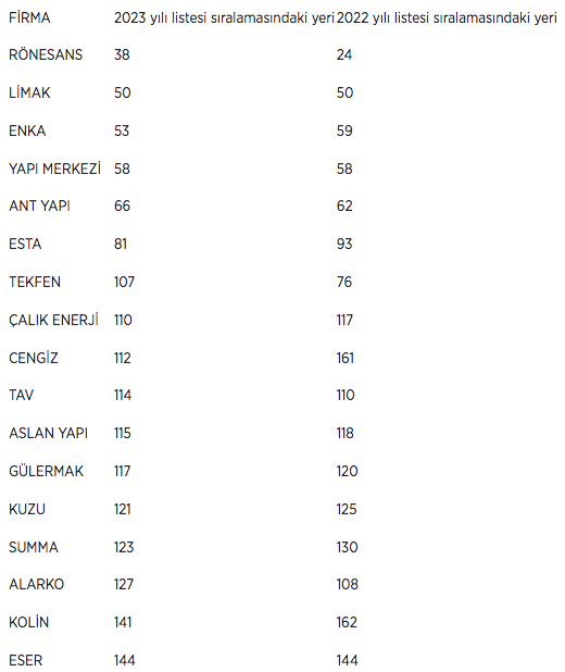 "Dünyanın En Büyük 250 Uluslararası Müteahhidi Listesi"ne giren Türk müteahhitlik firmaları şunlar:
