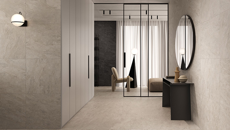 Porselen karolar, taşın güçlü karakterini doğala en yakın yüzey dokusuyla dış mekandan alıp iç mekana yansıtıyor. Kuvarsit parçacıklarının doğal pırıltısına sahip Quarstone, sıcak ve soğuk renk alternatifleriyle, tüm yaşam alanlarında diğer yapı elemanlarıyla uyumlu kombinler oluşturma olanağı sunuyor.
