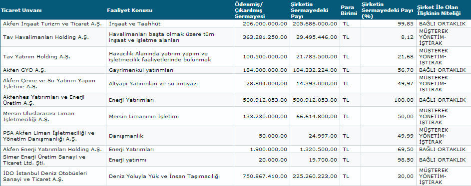 Akfen Holding bağlı şirketlerindeki sermayesini açıkladı