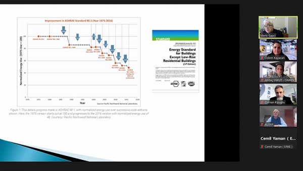 Bir projeci gözüyle yeşil binalar hakkında neler yapıldığı ve tarihsel geçmişi hakkında konuşma yapan Meriç Sapçı, 1970'li yıllarda ortaya çıkan petrol krizinin enerji tasarrufu üzerindeki etkilerinden söz ederek enerji tasarrufunun ASHREA 90.1 ve 62.1 standartları açısından tarihsel detaylara yer verdi. İlk defa 1984 yılında Dünya Sağlık Örgütü tarafından yayınlanan bir raporda ‘Hasta Bina Sendromu'na yer verildiğini ve 1993 yılında USCB (U.S. Commercial Building) isimli kâr amacı gütmeyen sivil toplum kuruluşunun çevre bilincini geliştirmek için birtakım fikirler ortaya koyarak sürdürülebilirlik proje tasarım kavramını ortaya çıkardığını belirten Sapçı, “Şimdi bu sürdürülebilirlik içerisinde insan, çevre ve ekonomi var. Yani projeler insan odaklı olacak, çevreye duyarlı olacak ve ekonomi odaklı olacak. Bu üç kümenin kesişimi de sürdürülebilir proje yapısını ortaya koymuştur. Bu fikir sayesinde 2000'li yılların başından itibaren Yeşil Bina sertifikalı binaların bir hayli yapıldığını görüyoruz. Covid-19'un etkisiyle birlikte bundan sonraki süreçte bir paradigma değişiminden bahsedebiliriz. Ekonomi ve enerji tasarrufu odaklı, sürdürülebilir ilkelere uygun proje gelişiminin yanında artık insan sağlığının da dikkat edilmesi gereğini ortaya koyan bir paradigma değişimidir bu.” dedi.