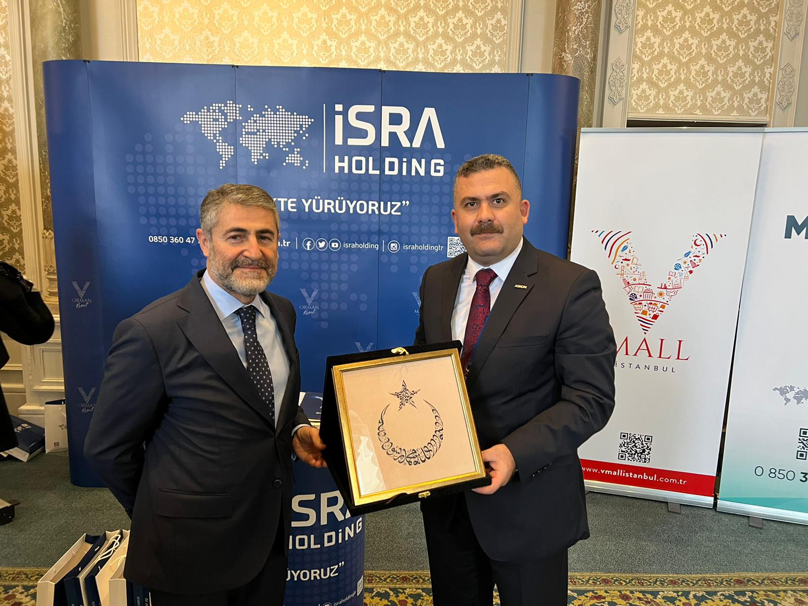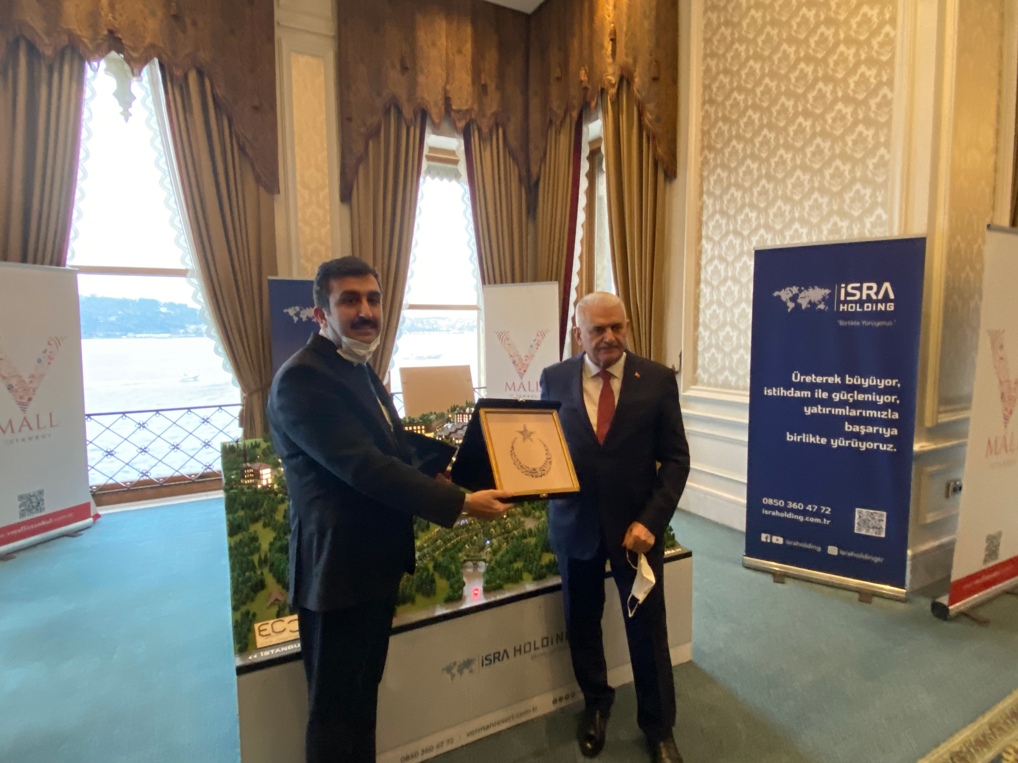 Zirayet sonrası bakanlar ve Binali Yıldırım’a günün anısına İsra Holding yetkililerince Ay Yıldızlı plaket takdim edildi.