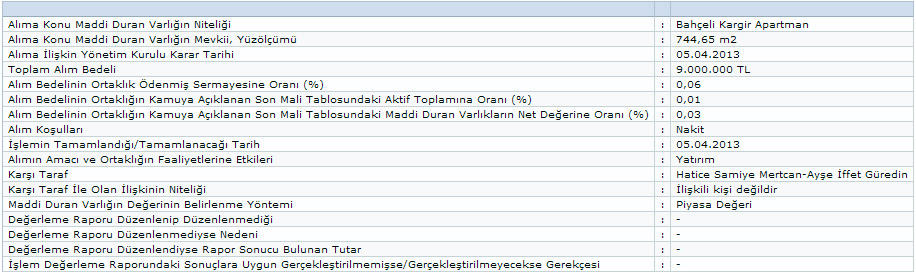 Özak GYO 9 milyon lira bedelle bahçeli kargir apartman satın aldı