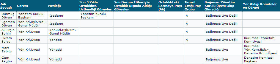 Reysaş GYO yönetim ve denetim kurulu üyelerini açıkladı. Son 5 yılda şirketin yönetim kurulu başkanlığında bulunan Durmuş Döven görevine devam ediyor. Döven'in yardımcılıklarını ise Egemen Döven ve Ali Ergin Şahin üstleniyor.