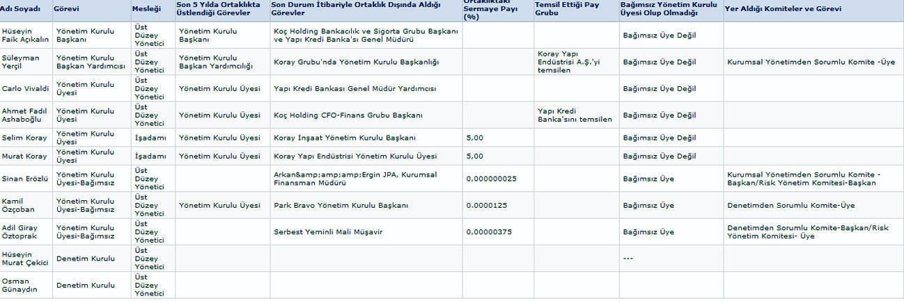 Selim Koray, Yapı Kredi Koray GYO'da Yönetim Kurulu Üyeliği'nin haricinde Koray İnşaat Yönetim Kurulu başkanı seçildi. Murat Koray ise, Yapı Kredi Koray GYO ve Koray Yapı Endüstrisi'nde Yönetim Kurulu Üyesi olarak görev yapacak.