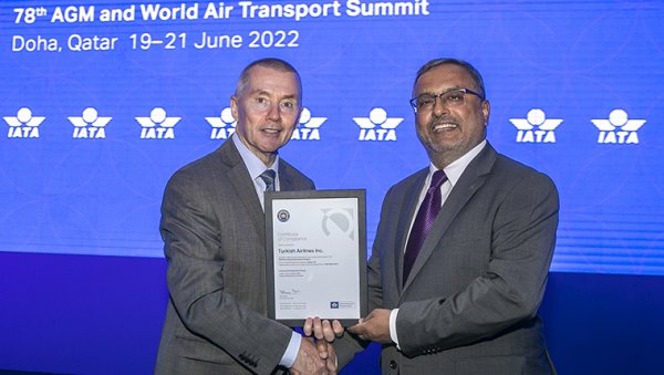 THY adına sertifikayı Yönetim Kurulu ve İcra Komitesi Başkanı Ahmet Bolat, Katar'ın başkenti Doha'da düzenlenen IATA Yıllık Genel Kurul Toplantısı ve Dünya Hava Taşımacılığı Zirvesi'nde aldı.