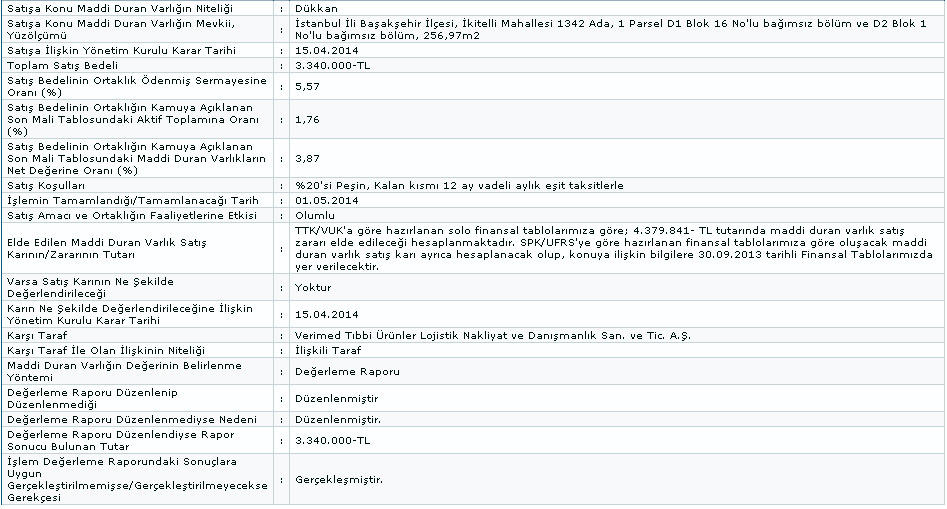 Uyum Gıda'nın Büyükçekme ve Maltepe'de 5 dükkan, Beylikdüzü ve Başakşehir'de de 91 bağımsız birim, Arnavutköy'de de tarla sattı. Uyum Gıda'nın Verimed Tıbbı Ürünler'e sattığı 5 dükkan ve 91 bağımsız birim ve 1 tarlanın toplam bedeli 35 milyon 147 bin lira olarak açıklandı.