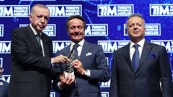 Zorlu Holding Yönetim Kurulu Başkanı Ahmet Zorlu, Vestel’in Türkiye’de en çok ihracat yapan şirketlerin yer aldığı genel sıralamadaki 5’incilik ödülünü Cumhurbaşkanı Recep Tayyip Erdoğan’dan, sektör birinciliği ödülünü ise Ticaret Bakanı Mehmet Muş’tan aldı.