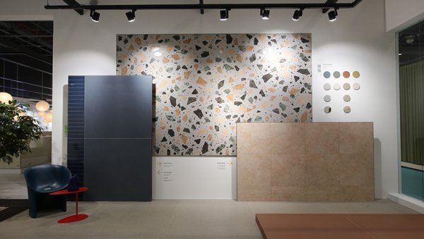 VitrA’nın standında, doğadan ve yaşamın özündeki yenilikçi döngüden ilham alınarak tasarlanan yeni entegre karo sistemi çözümleri ve malzeme seçenekleri de ilk kez sergilendi. Mekana cesur ve ince bir dokunuş yapan Resincrete, doğal taş görünümünü beyaza yakın açık renkler ve doğal dokularla birleştiren LightStone ve dış dünyanın canlandırıcı etkisini, bütünlük içerisinde iç mekanlara taşıyan CobbleMix karo sistemi; farklı kombinasyonlara kapı aralayan karo sistemleri olarak fuarda beğeniye sunuldu. VitrA’nın fuardaki en yeni karo koleksiyonlarının arasında kentsel şıklığı yeniden tanımlayan ve lükse zahmetsizce ulaşmayı vaat eden City Marble, arduvaz taşının renk ve desen farklılaşmalarını en doğal haliyle yansıtan Ardesia Stone ve monokrom yapılı taneciklerle zenginleşen beton görünümlü Cementside da yer aldı.