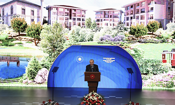 Cumhurbaşkanı Recep Tayyip Erdoğan, Beştepe Millet Kongre ve Kültür Merkezi'nde Cumhuriyet tarihinin en büyük sosyal konut projesinin tanıtım töreninde konuştu.