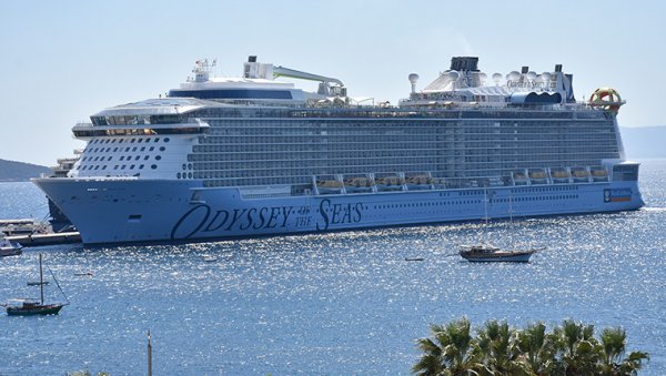 Bodrum'a, Bahama bayraklı 347 metrelik "Odyssey of the Seas", Limassol Limanı'ndan geldi. Gemide çoğunluğu ABD'li 3 bin 620 yolcu ile 1651 kişilik mürettebat bulunuyor.
