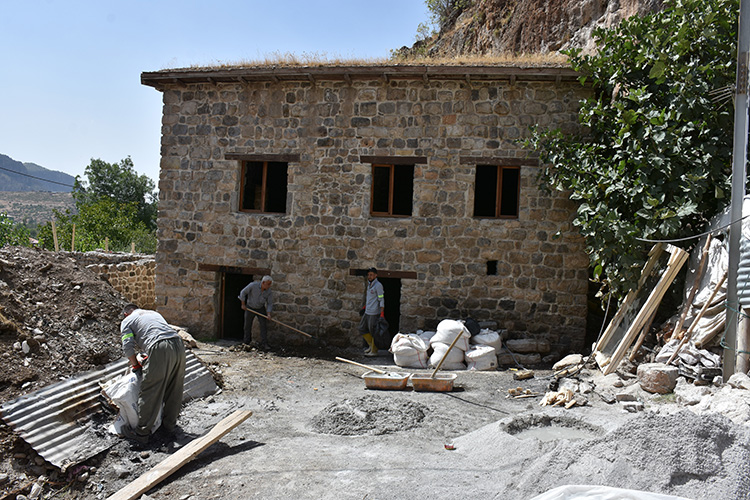 Restorasyon çalışmalarında görev yapan Nurettin Ediş de "Evlerdeki duvarları yapıyoruz. Evleri eski dokusuna uygun inşa ediyoruz. Damlar ağaçtan yapılıyor, üstü de toprakla kaplanıyor. Şu anda yaptığımız iki ev var. İki bölümden 6 ayrı oda olacak." dedi.